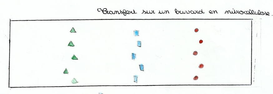 - Etape 3 : Les trois protéines maintenant séparées sont transférées sur un buvard de nitrocelullose3.